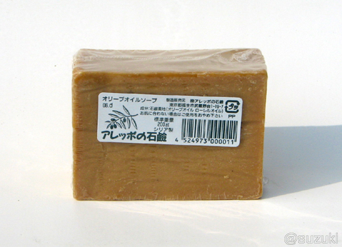 | オリーブオイル・ローレルオイル・アルカリのみで作られた無添加の石鹸。シリアのアレッポという都市で千年以上の伝統を受け継いで作られてきました。オリーブ油やローレル油が採取される秋から冬の間だけクッキングされます。三昼夜の釜炊きした後切り分けてから積み置いて1〜2年間乾燥させます。オイルに含まれるグリセリンや微量成分を適度に残し、その使い心地はとてもソフトでお肌に優しく、顔から身体、洗髪にもご使用いただけます。 |